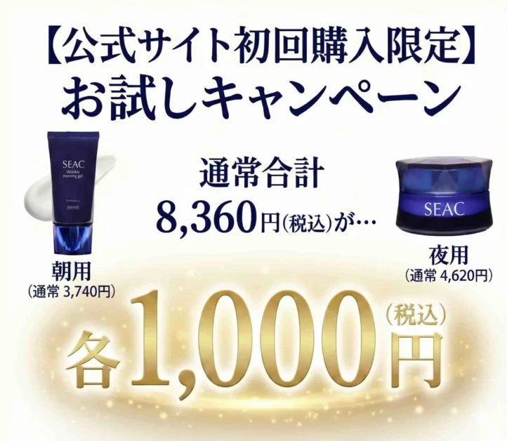 美容家やスキンケアのプロからも絶賛の声が相次ぐ「SEACシワ改善オールインワン」がこの驚きの価格で試せるのは、初回限定の今だけ。