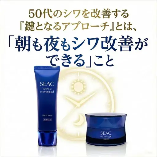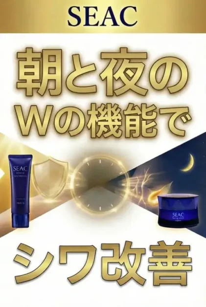 芸能人や美容のプロたちが、こぞってSEACを使い続けるのも、 「贅沢な朝も夜もシワ改善で、若見えを目指せる」という強い信頼があるからです。