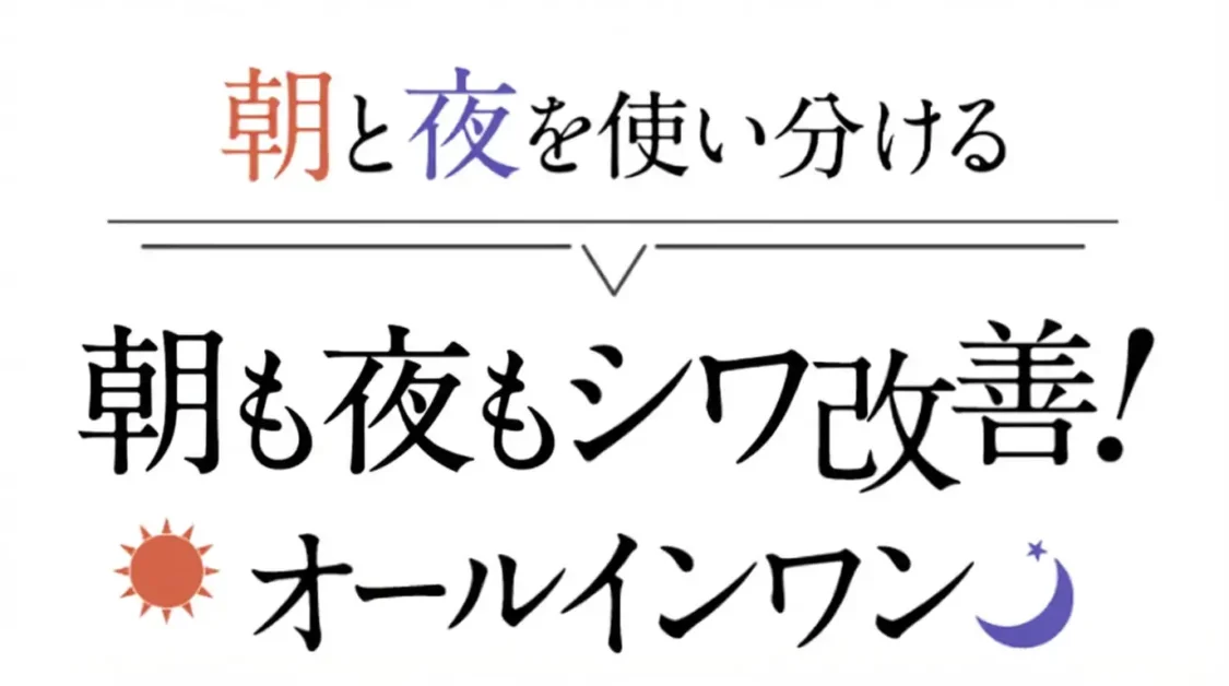 24時間シワ改善ができる朝用・夜用オールインワン!お肌を「守る」・「育てる」の集中アプローチ