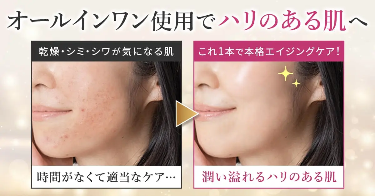 実は最近のオールインワンは肌にうるおいを与えるだけでなく、シワ改善や美白効果のある成分を配合していてライン使いと変わらない効果があります。