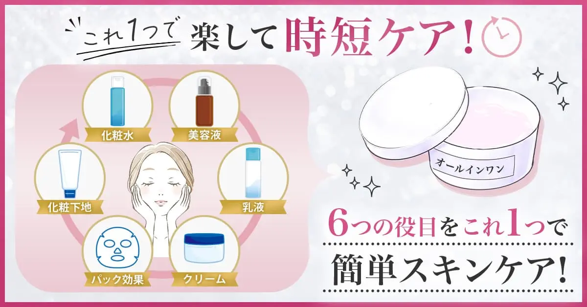 忙しい朝でもオールインワンが1つあるだけで、洗顔後はすぐにメイクの準備が出来ます!こんなに便利なオールインワンなら1つは持っておきたいですよね。