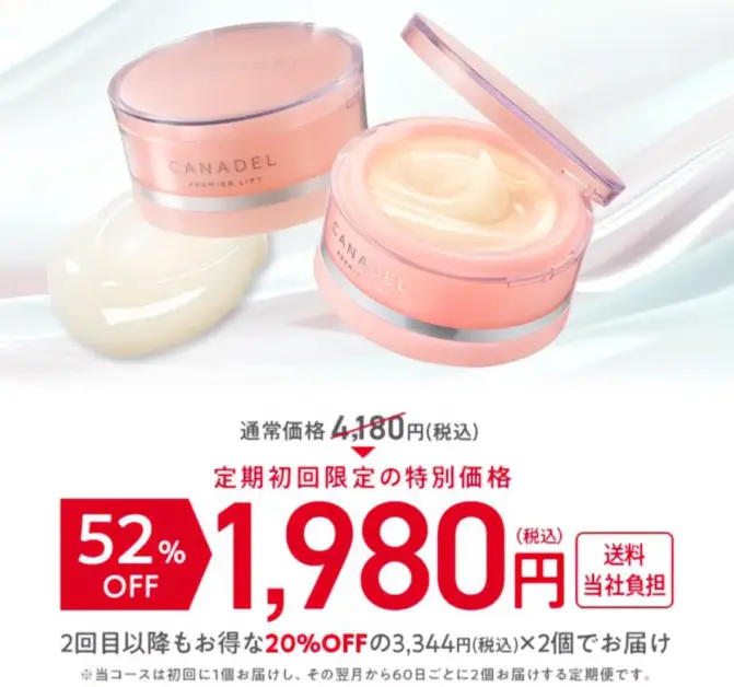 口コミで高評価の声も多い「CANADEL プレミアリフト」が定期初回ならお得に購入できます。※2回目以降は20%OFF