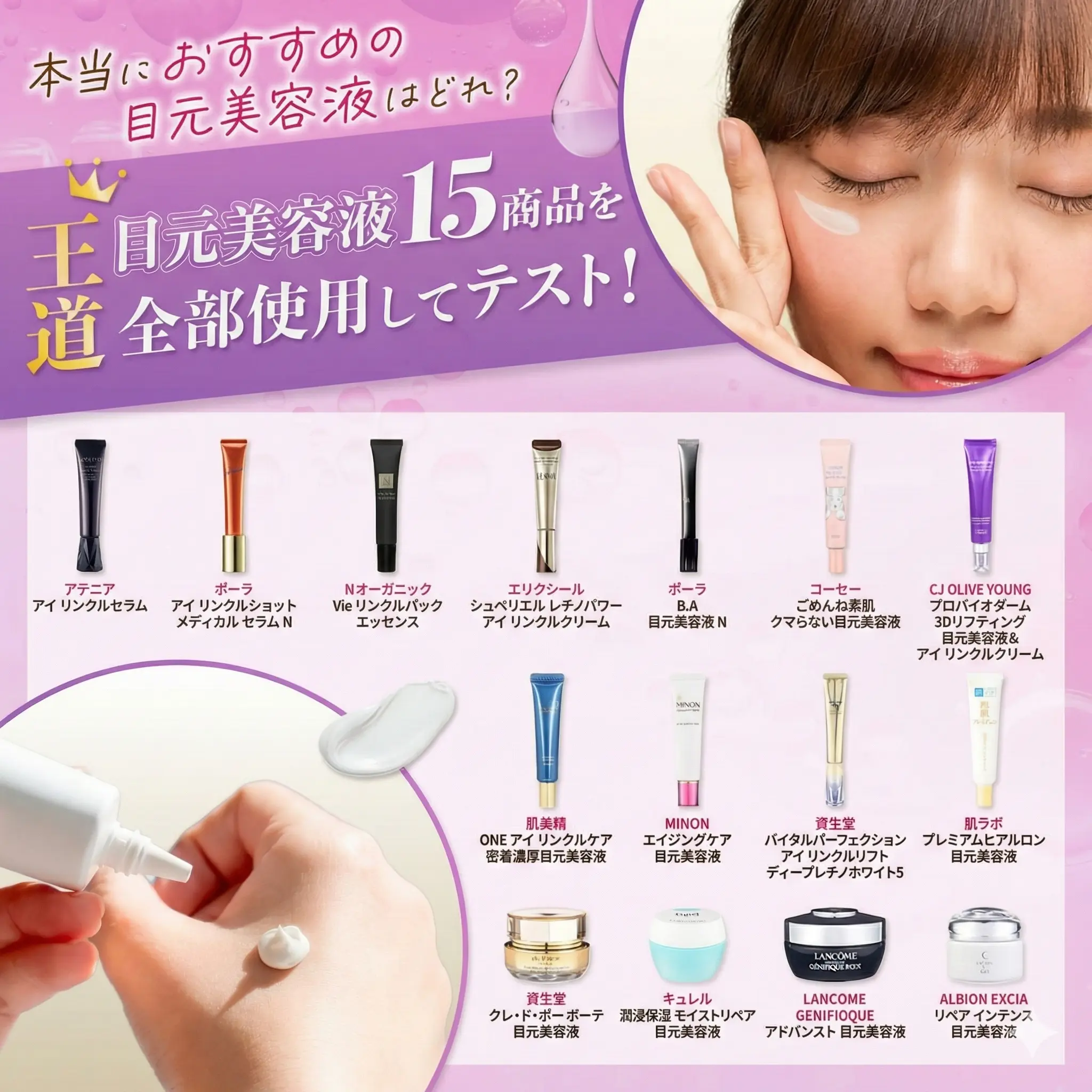 【15商品検証】目元のシワにアプローチ!ハリのある目元を取り戻せる人気No.1目元美容液を発表