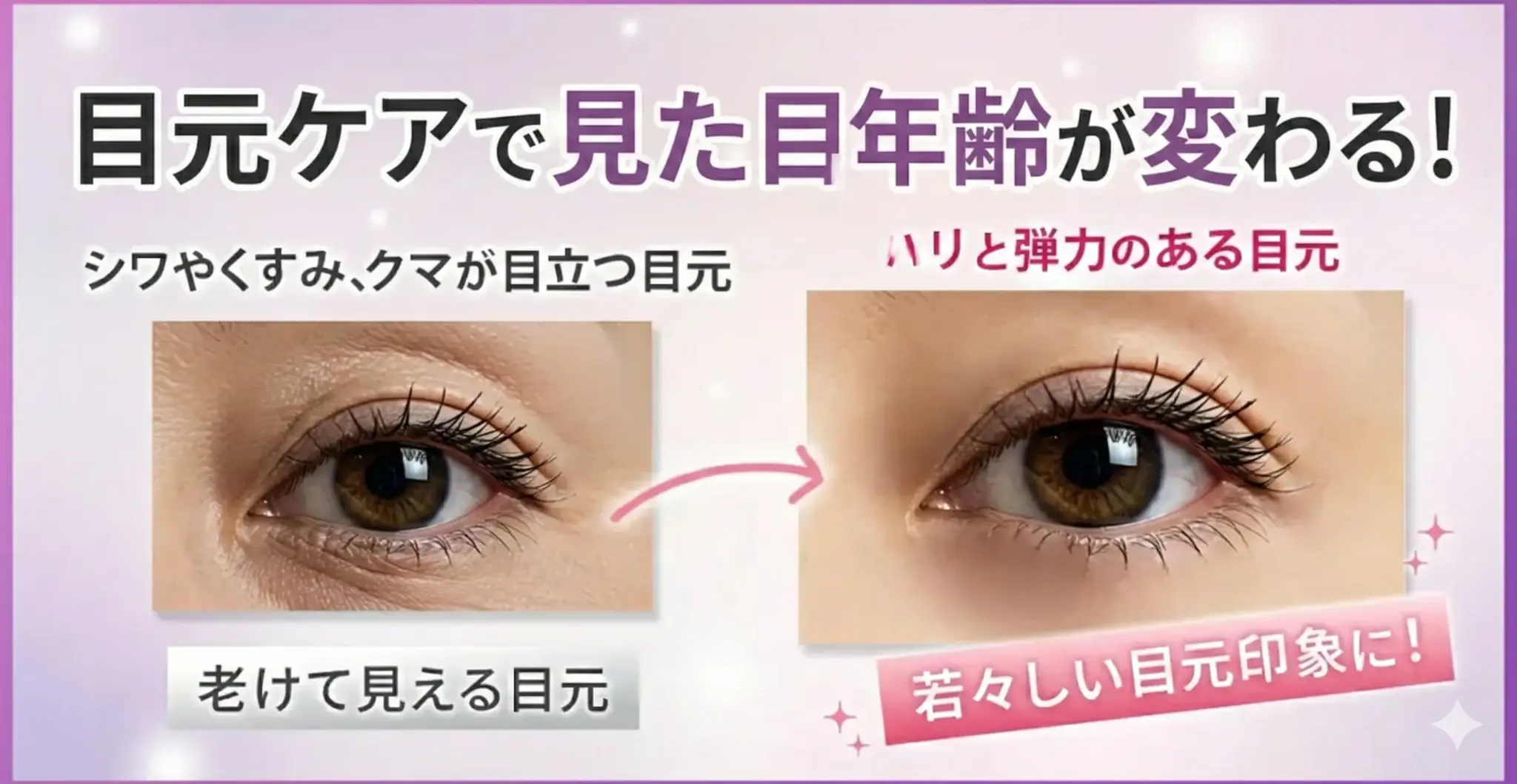 実は、目元の印象が変わるだけで、目元は見た目年齢に大きな影響を与えてしまうんです。