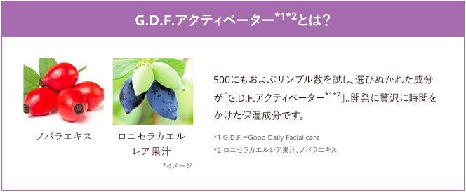新配合のG.D.F.アクティベーター(*6)(ハスカップエキス×ローズヒップエキス)と、GLルートブースター(*7)(スイカズラ×メマツヨイグサ)が、肌のエネルギーの巡りを整えます。さらに美白有効成分トラネキサム酸配合(*8)で、シミ・そばかすを予防。