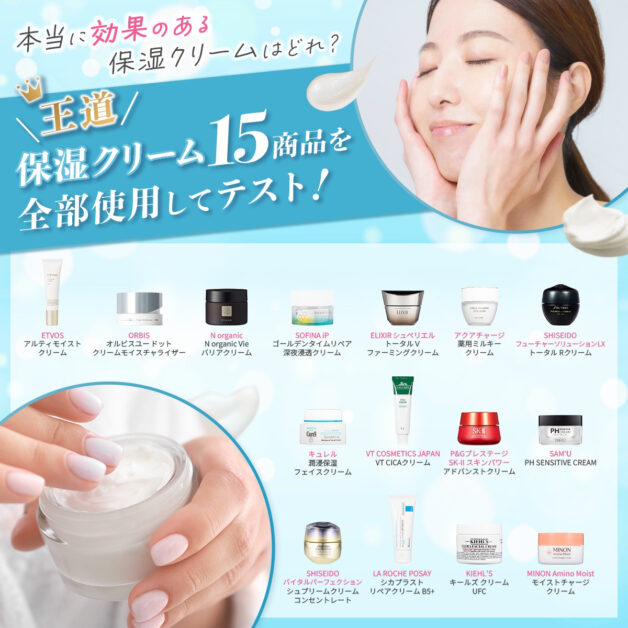 「フェイスクリームが乾燥や年齢肌のケアに良いことはわかったけど、たくさんあってどれを選べばいいか分からないという方のために、今回編集部は評価の高かった人気の15種類を実際に1ヶ月使ってみてテストしました!