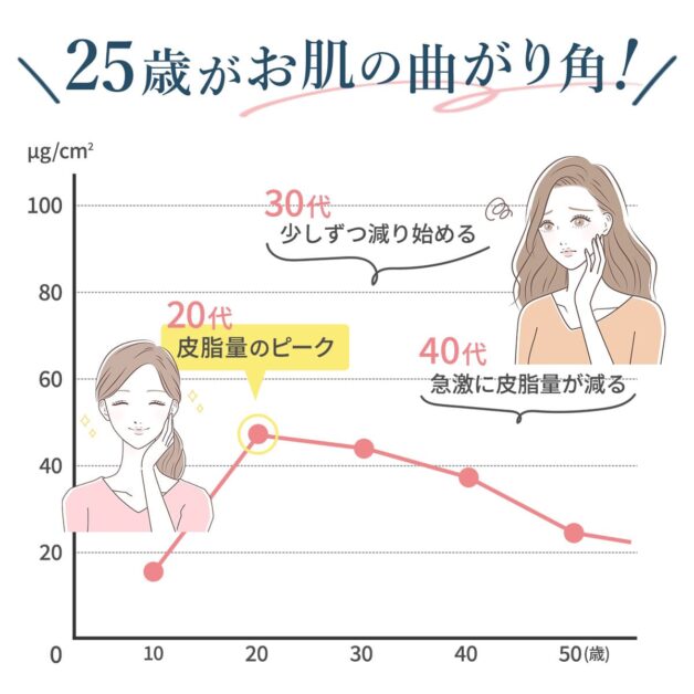 歳を重ねるごとに気になる肌の乾燥。お肌は25歳頃から徐々に皮脂が出にくくなるので、今までと同じケアをしているとどんどん乾燥が進んでしまうんです。