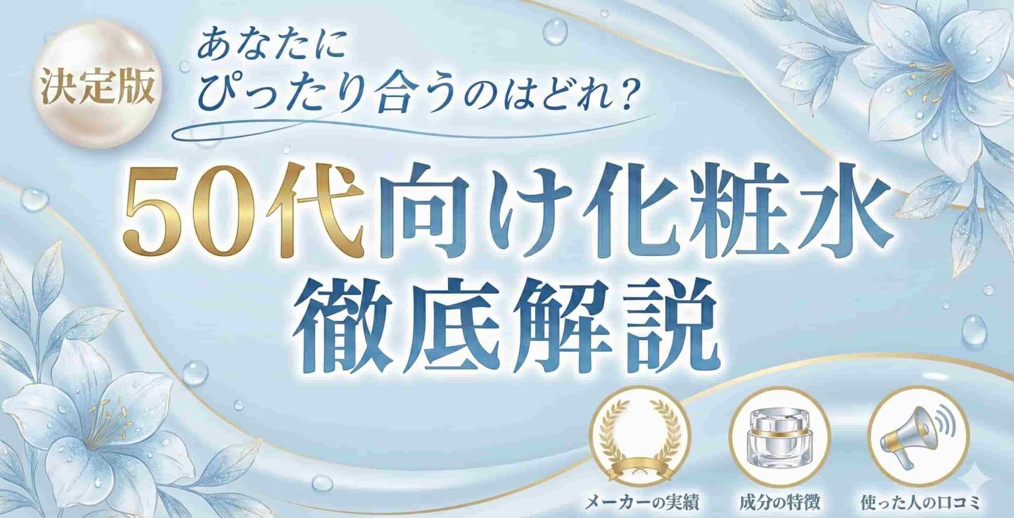 エイジングサインを感じてきた50代の肌をしっかりケアするためには、ポイントを押さえて化粧水を選ぶことが大切です。