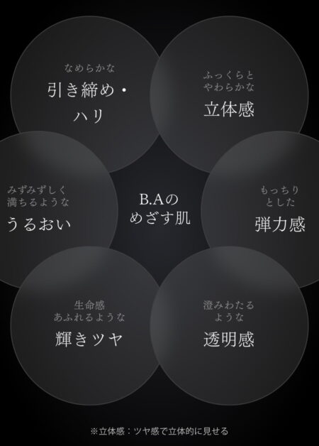 年齢に応じたお手入れで、うるおいを抱え込み引き締まったハリ感を。「B.A ローション 7」で、触れた瞬間うるおいに満ちるような感触と、しっとりとした使い心地をぜひ体験してください。