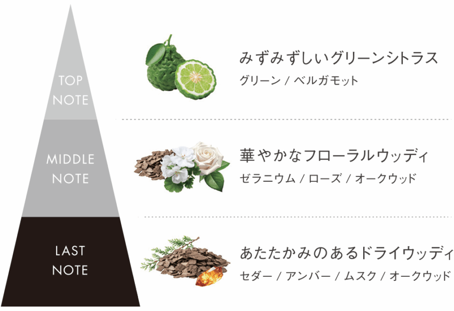 少しとろみのあるテクスチャーが、肌に溶け込むようになじんですばやくうるおいを感じられるような使用感。ベタつかないのにしっかり保湿され、しっとりスベスベの使用感。みずみずしいグリーンシトラスに、フランス産オークのワイン樽製造過程で生まれる副産物をアップサイクルしたオークウッドの香りを加えた、スキンケアタイムを特別な時間にいざなう上質な香りも魅力です。
