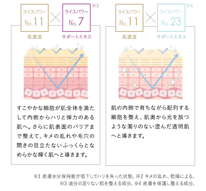 こうした考え方をもとに、米肌 肌潤化粧水には有効成分としてライスパワーNo.11が配合されています。