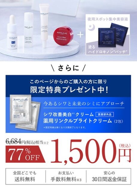 現在は初めての方限定で、アンプルール クリアコンセントレートHQショットを含むトライアルセットが1,500円(税込)で用意されています。お一人様1個限定のセットなので、まずは使用感を確認したい方にも取り入れやすい内容です。