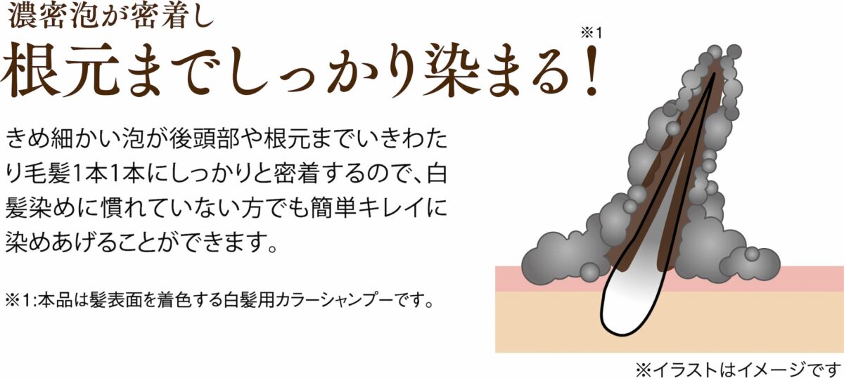 根元からしっかり染まる!日本初※の高密度炭酸白髪染めシャンプー