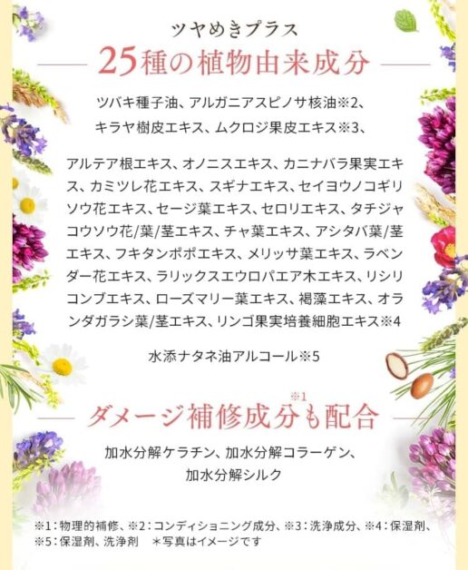 31種類の美容成分を配合しており、髪と頭皮にやさしい処方となっています。これらの成分には、サラサラツヤ髪ケアを実現する美容成分や、植物由来の頭皮潤い成分が含まれています。