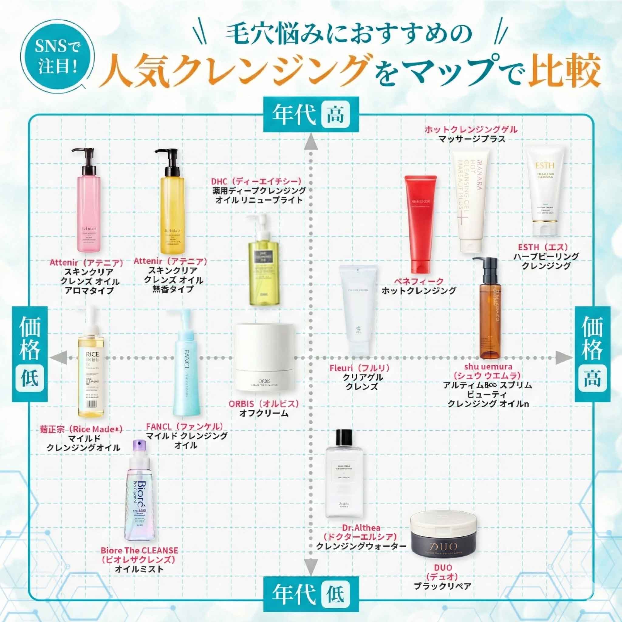 アテニア スキンクリアクレンズオイル | ![]() FANCL マイルドクレンジング | ![]() DHC 薬用ディープクレンジングオイル | ![]() ESTH ハーブピーリング クレンジング | ![]() オルビス オフクリーム |