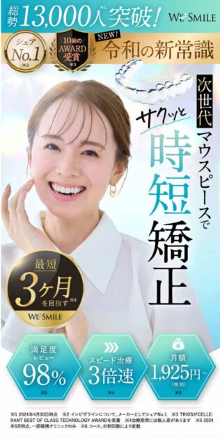 特別価格でお試しいただける今こそ、あなたの笑顔をレベルアップするチャンスです。WE SMILE次世代マウスピース矯正で、あなたの人生に感動の変化をもたらしてみませんか?