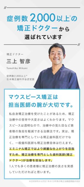 早速、おすすめのマウスピース矯正を発表します!なかでもエミニナル矯正口コミでの満足度が高く、編集部でも注目のひとつです。