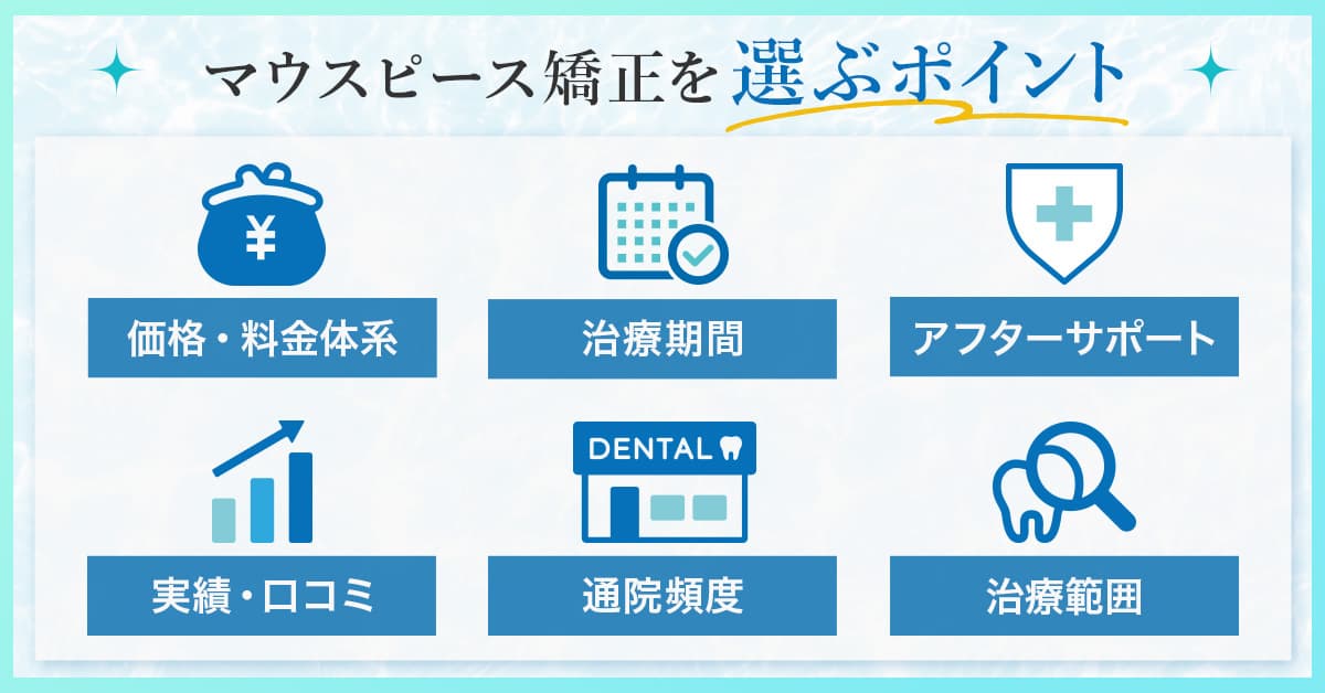 自分のライフスタイルに合った矯正方法を見つけるには、まずは選ぶポイントを知っておくと安心です。