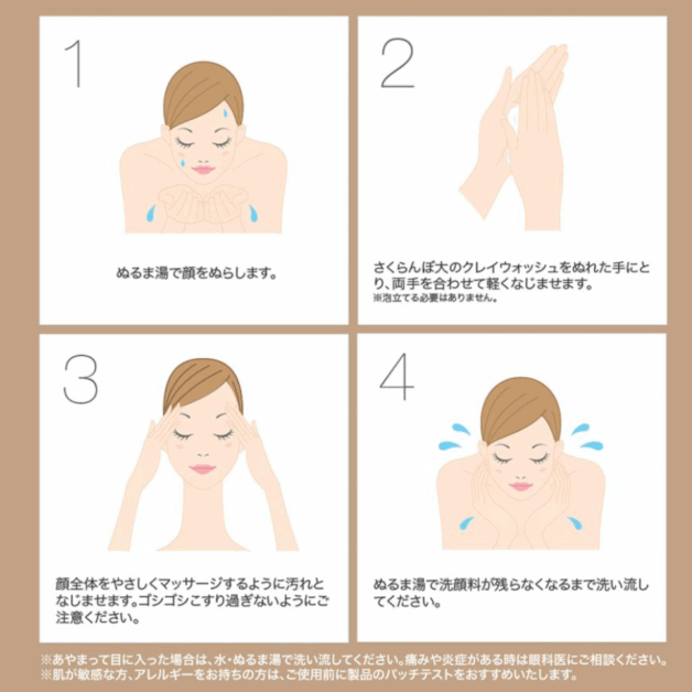 配合成分 モンモリロナイト、グリチルリチン酸ジカリウム、スクワラン、ヒアルロン酸、カミツレ花エキス