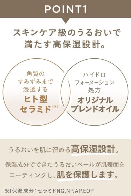 成分の特徴 ヒト型セラミド配合でスキンケア級のうるおう保湿設計