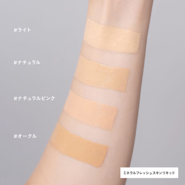 商品は30mL入り4,400円(税込)で、全4色のカラーバリエーションからお選びいただけます。ライトは明るめの標準的な肌色の方に、ナチュラルピンクは標準的な肌色の方に明るさと血色感をプラス、ナチュラルは標準的な肌色の方にヘルシー&ナチュラルなトーンを、オークルは健康的な肌色の方に最適です。
